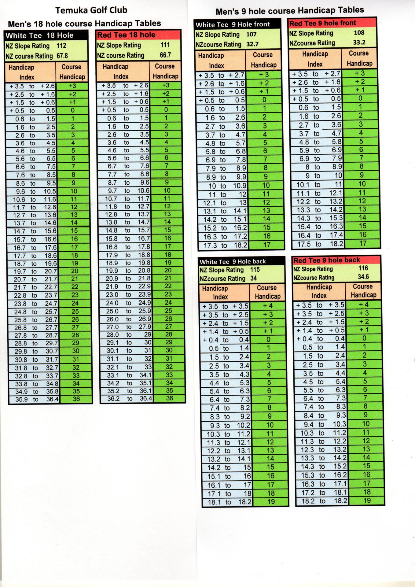 Mens Handicap Tables
