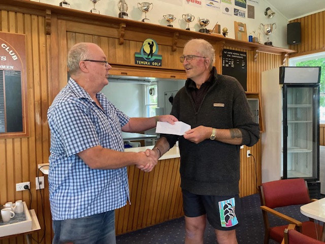 Rex Archibald (right) being awarded an Honored Membership of the Club in recognition of the many hours he has contributed to the course, by the President Steve Mackle. Rex is on the firewood team (a major fundraiser for the club), is always present at any working bees, a member of the Course Committee, he trims and mows, assists in the bar and always willing to help. The honour is well deserved Rex. Congratulations.